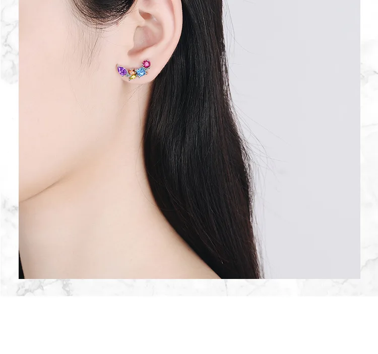 Fashion Colorful Zircon Studs Female European and American Fashion Temperament Personality Ear Accessories XzED911